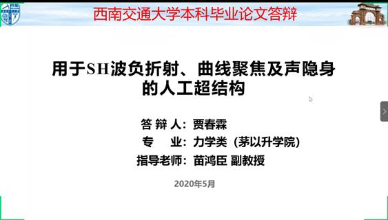 2020年5月28日上午,力学与工程学院2020届本科生毕业论文校级抽样答辩以腾讯会议的形式举行。经过了四载难忘充实的学习旅程,2020届本科生终于迎来了属于他们青春毕业季,开始接受毕业前的最后一次检验。
