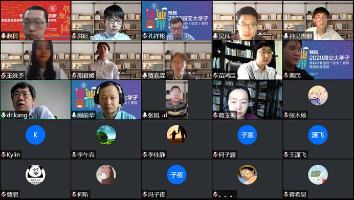 受疫情影响,按照教务处的要求,本次校级抽样答辩采用线上答辩的形式进行。学院对此高度重视,院长康国政、学院党委书记栗民、学院党委副书记孔祥彬、副院长阚前华、副院长高芳清以及抽样答辩毕业论文的指导老师、答辩秘书、答辩同学参加了答辩,部分面上答辩评委和毕业同学进行了观摩。同时,本科教学专家葛玉梅教授作为答辩督导巡视员,对答辩过程进行了全程监督。答辩会从9点钟准时开始,至12点钟圆满结束,答辩过程秩序良好。答辩期间校长杨丹、党委副书记沈火明等校领导莅临指导,并对同学的答辩内容进行了点评。沈书记对同学们毕业论文的内容和质量给予了充分肯定,同时鼓励同学们在今后的学习生活中继续努力,传承交大精神。